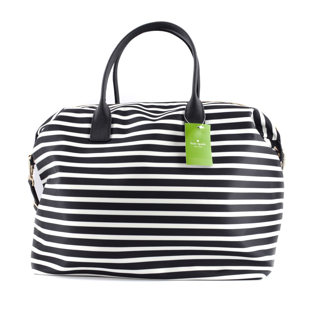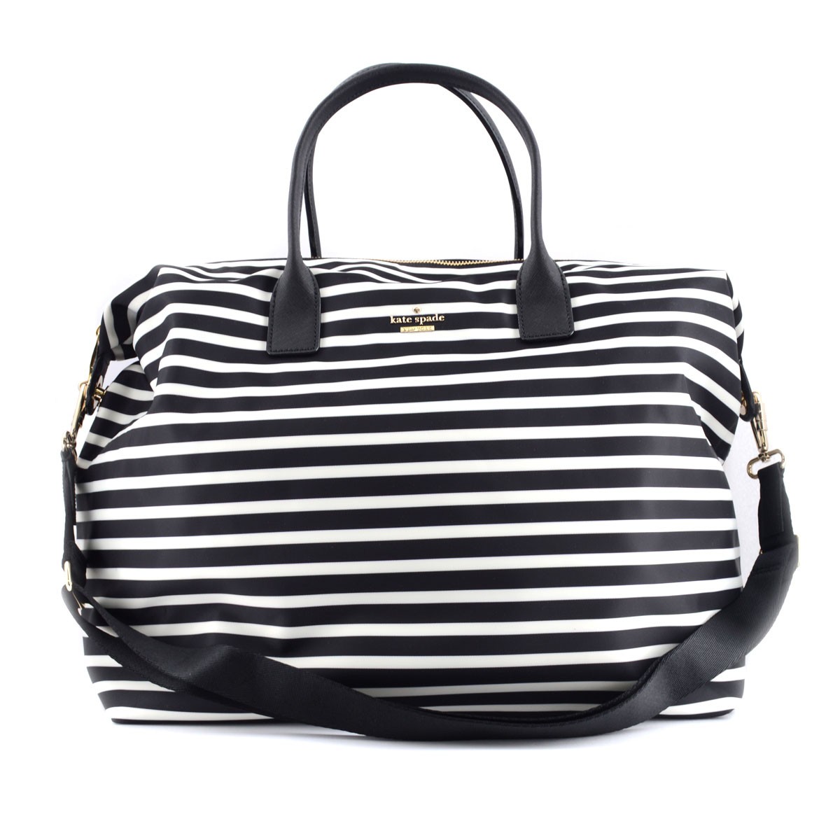 ケイトスペード Kate Spade PXRU5474 071 Black/Clotted Cream Classic Nylon Lyla ナイロン ボーダー柄 ショルダーストラップ付 ボストンバッグ トラベルバッグ
