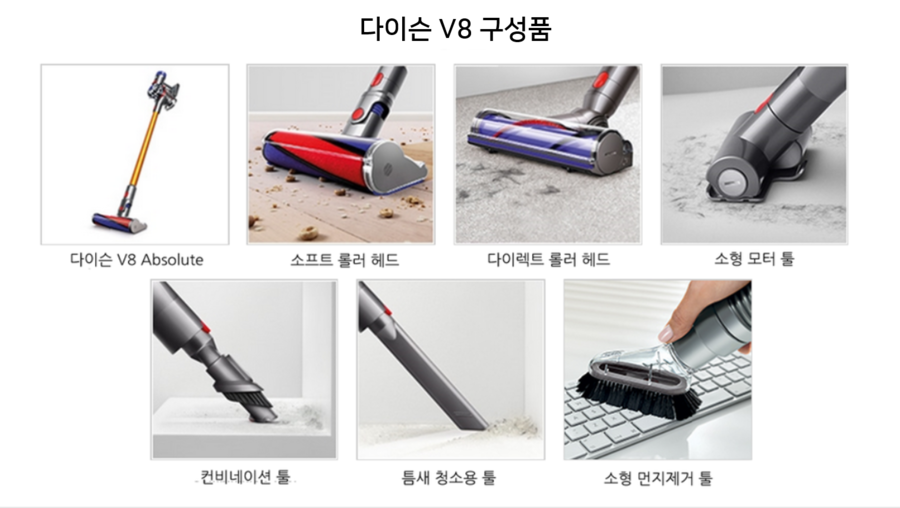 소형모터툴+컨비네이션툴+틈새청소용툴+소형먼지제거툴 (한국, 미국 출시모델 모두 동일)