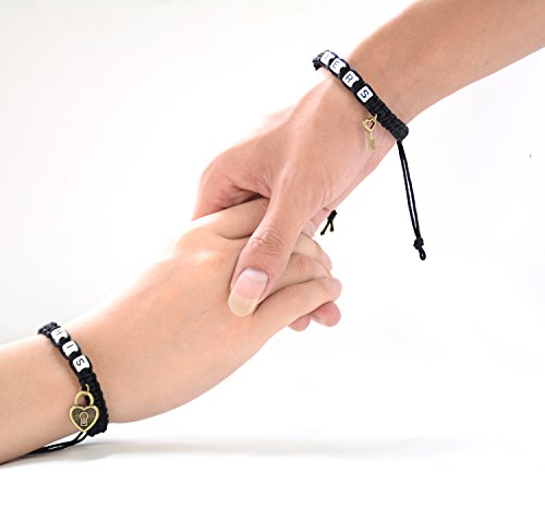 - Purely handmade couple bracelets, made of nylon rope braided band and plastic bead and alloy bracelets charms