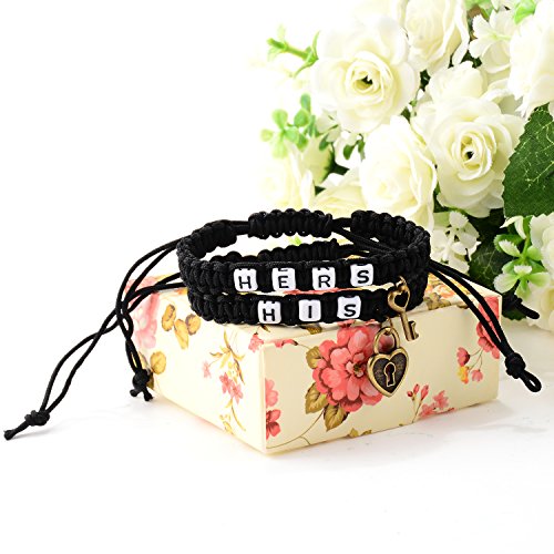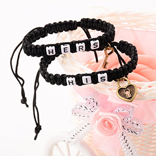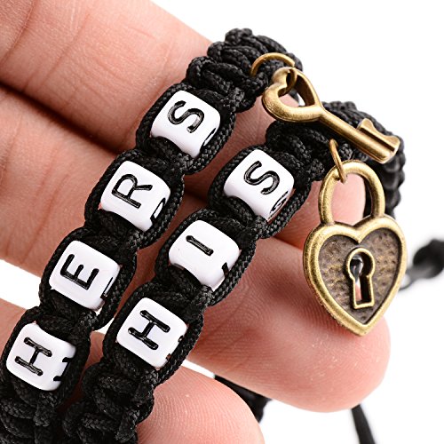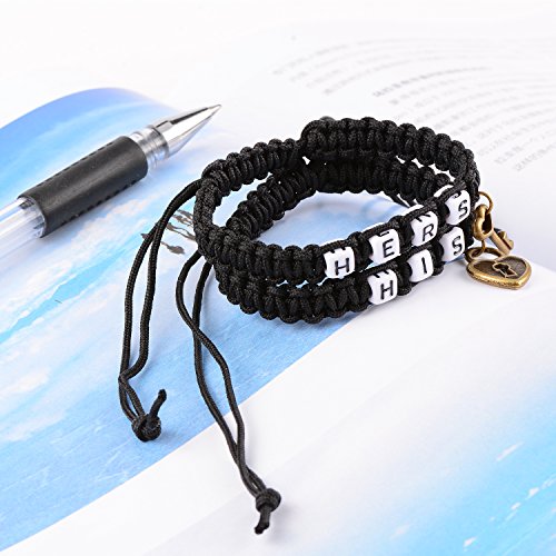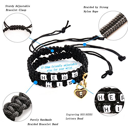 Couples Bracelets, HOBOYER Upgrade Handmade Braided HIS and HERS Couple Bracelet for Him and Her with Key and Lock Charms Bracelets Set Couples Gifts (Black & Black)