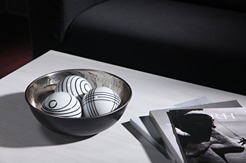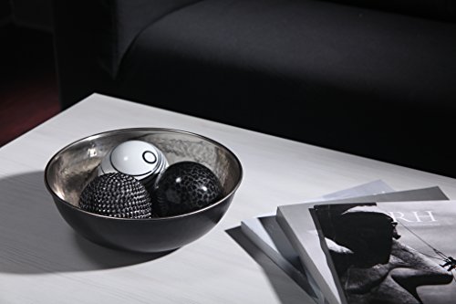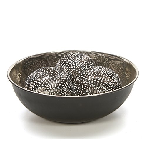 USE: This Hosley's two tone nickel and black finish metal bowl are perfect for adding a decorative touch to any room's decor. Perfect coffee table centerpiece. Can be filled with decorative orbs or dried potpourri to add a natural element to any room.