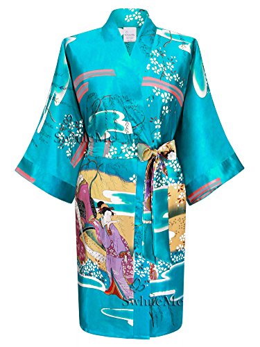 Swhiteme Women's Kimono Robe, Short, One Size, Geisha, Turquoise