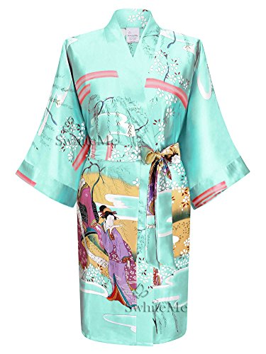 Swhiteme Women's Kimono Robe, Short, One Size, Geisha, Aqua