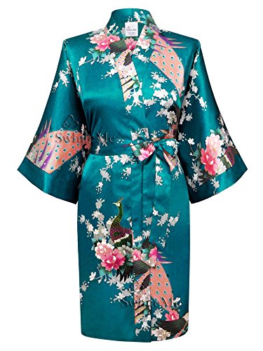 Swhiteme Women's Kimono Robe, Short, One Size, Peacock-Peacock, KPS01B