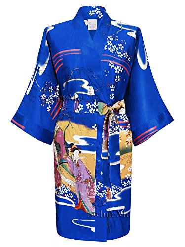Swhiteme Women's Kimono Robe, Short, One Size, Geisha, Sapphire