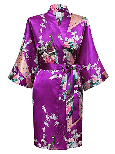 Swhiteme Women's Kimono Robe, Short, One Size, Peacock, Violet, KPS01B