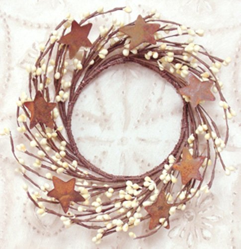 Wreath - 4" Vanilla/Ivory Pip Berry and Rusty Star Wreath - Primitive Country Rustic Twig Decor