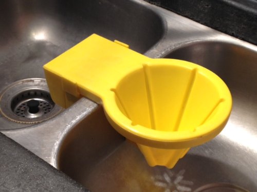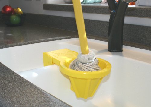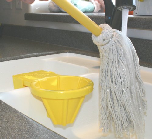 Mopping floors has always been either a lot of work or poorly done - until now! With SqueezeEze you can easily use a deck mop without a messy bucket or wringing by hand. A good deck mop really works far better than sponge mops or those silly pad mops. SqueezeEze is the perfect solution. This hands-free conical mop wringer conveniently rests firmly in place on your sink center divider, or the wall of a basin sink, allowing you to rinse your mop under clean running water and wring it out right at the sink. No more buckets to fill or empty. No more bending and stooping to wring your mop - rinsing and wringing is done at counter height. You can also apply your choice of cleaners directly to the floor or the mop, rather than diluting your cleaners in water - you use less cleaner which saves money. It's lightweight and this ingenious cleaning tool is easily stored anywhere - under the sink or even in a drawer. It is strong and durable with no moving parts, made in the U.S.A., and backed by a lifetime manufacturer's guarantee. Best of all, you will find yourself with the cleanest possible floor because your mop is rinsed under clean running water each time rather than in progressively dirty water with a mop bucket. This eco-friendly solution also promotes being green - it is designed for re-usable string mops, deck mops, wet mops or fabric strip mops, nothing disposable to go into the landfills. Discover the ease of the SqueezeEze by watching our instructional video on YouTube.Feature