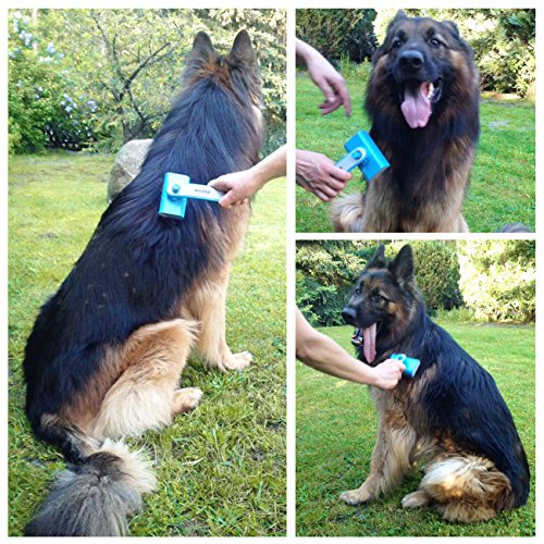 - ✔ Self Cleaning Dog & Cat Brush: Start using our slicker brush with just a press of a button. After you're done, simply push the button on the back of the brush and all the hair would be pushed forward to the surface for you to remove the hair at once immediately. Push the release button forward to release your best friend.