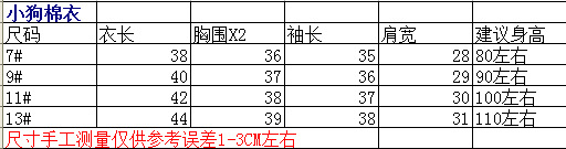 尺码表