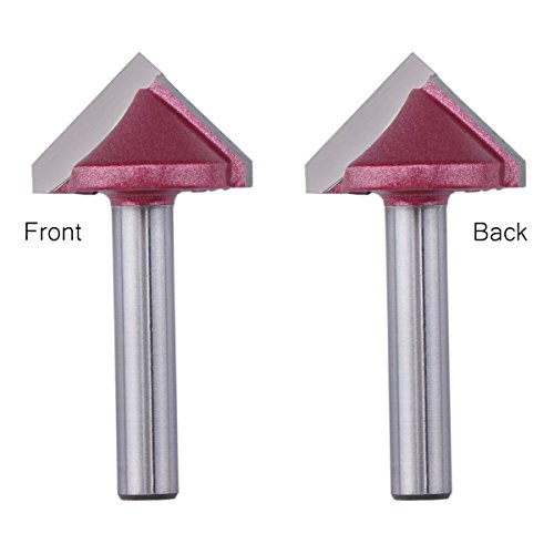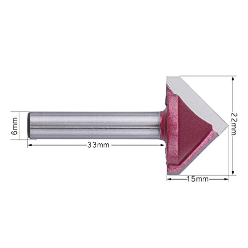 EnPoint™ Titanium Coated Carbide-Tipped Double Edge Miter Fold V-Groove Router Bit 15/64" 6mm Shank 90° 22mm Cutter Dia 3D Sign Making Lettering Engraving Tool Woodworking Chamfer Bevel Cutter