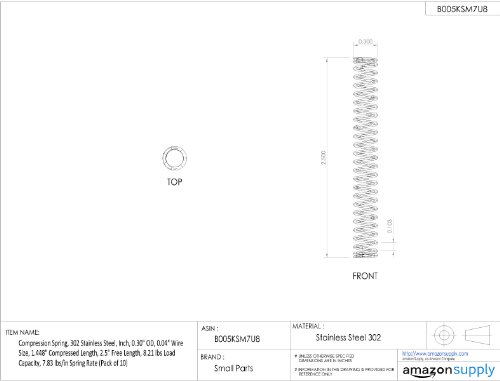 Compression Spring, 302 Stainless Steel, Inch, 0.30" OD, 0.04" Wire Size, 0.25" Compressed Length, 0.38" Free Length, 8.21 lbs Load Capacity, 62.89 lbs/in Spring Rate (Pack of 10)