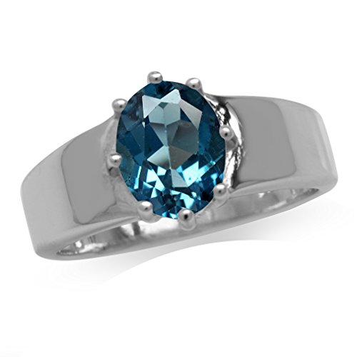 -. Title : 2.28ct. Genuine London Blue Topaz White Gold Plated 925 Sterling Silver Solitaire Ring