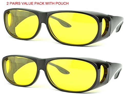 -. Feature : HD night vision lenses / Classic and simple design / Each pair comes with high quality pouch, easy to carry / Frame Total: 150mm, Lens Height: 43mm, Bridge: 15mm, Arm Length: 140mm / Suitable for prescription glasses frame in size: frame total < 130mm, height <40mm
