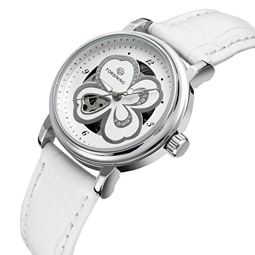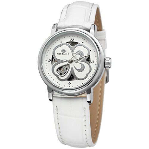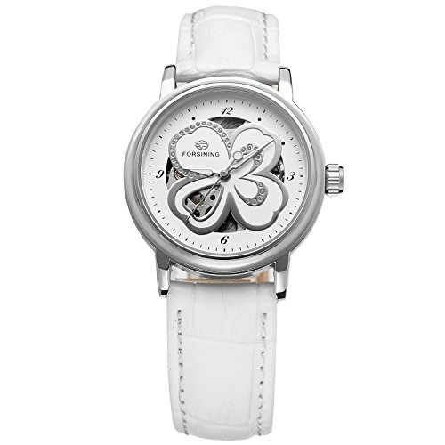 Forsining Women's Stylish Automatic Self-winding Skeleton Leather Strap Analogue Watch FSL8014M3S3