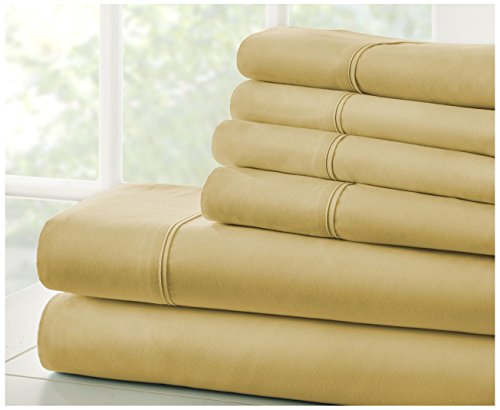 Luxury Soft Deluxe Becky Cameron Hotel Quality 6 Piece Bed Sheet Set, Queen, Gold