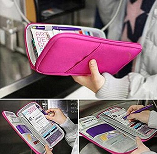 -. Title : Sunshiny Travel Wallet Passport Holder Document Organizer Card Bag Rose