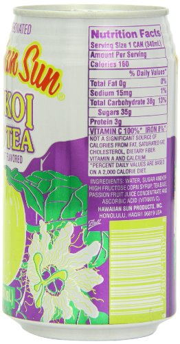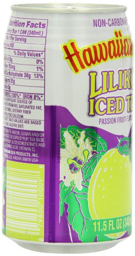 -. Binding : Grocery -. Brand : Seasia -. EAN : 0079800100098 -. Feature : 24 cans of Hawaiian Sun Tropical drinks. / A light iced tea blended with lilikoi (passion fruit) juice. / Hawaiian Sun's popular 11.5 oz Nectars and Drinks come in different blends of tropical flavors. / Hawaiian Sun nectars and drinks are packaged in aluminum cans designed with colorful fruits, island scenery and flora. / Made in Hawaii since 1952 -. Label : Seasia -. Manufacturer : Seasia -. NumberOfItems : 24 -. ProductGroup : Grocery -. ProductTypeName : GROCERY -. Publisher : Seasia -. Size : 11.5 Ounces -. Studio : Seasia -. Title : Hawaiian Sun Lilikoi Iced Tea, 11.5-Ounce (Pack of 24) -. UPC : 079800100098