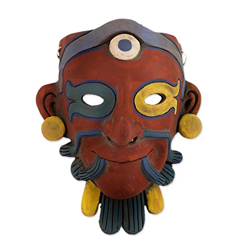 NOVICA Decorative Archaeological Ceramic Mask, Multicolor, 'Ek Chuak Maya Lord'