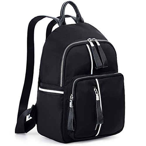 -. Title : UTO Lightweight Nylon Backpack Leather Zipper Puller Straps Stylish Rucksack Travel Bag Shoulder Purse Black