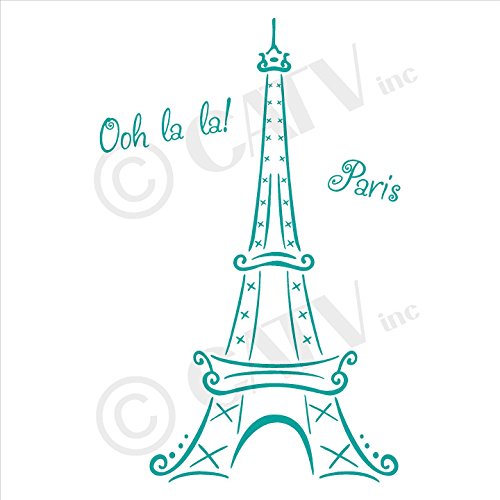 Eiffel Tower Ooh La La Paris Vinyl Wall Decal Sticker (72"H x 39"W, Turquoise)