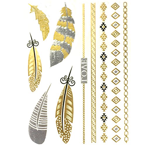 Make a statement with these celebrity inspired temporary tattoos in metallic gold, silver, and black.