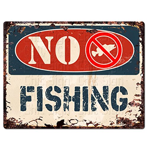 NO FISHING Chic Sign Vintage Retro Rustic 9"x12" Metal Plate Store Home Room Wall Decoration