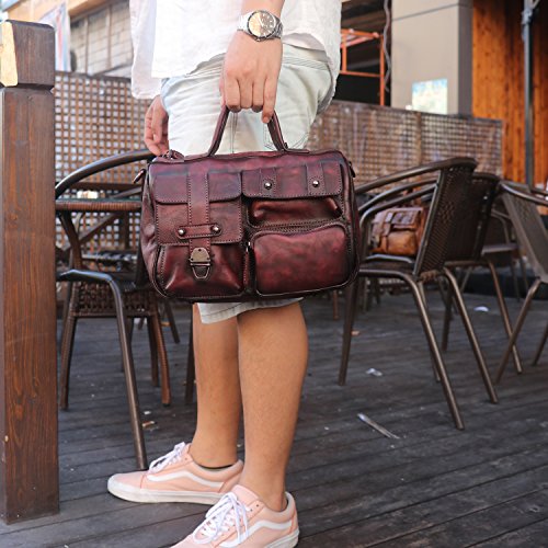 Vintage Genuine Leather Crossbody Bags Multi Pockets Handbag for Women and Men Satchel with Top Handle …