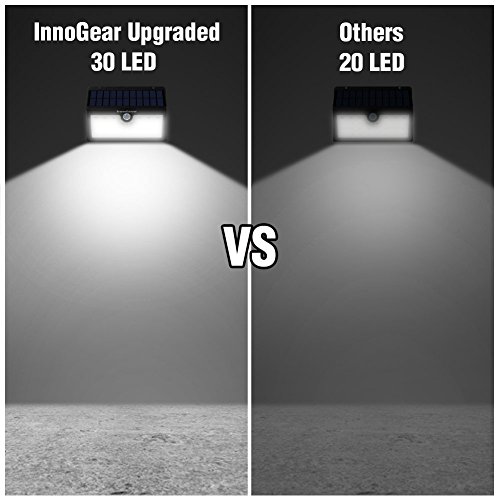 InnoGear solar motion light comes with more sensitive sensor ball head and bigger size solar panel compared with other solar lights. It is wireless and easy to install, simply mount to the wall with the screws included. Durable design makes the product suitable for all weathers after full sunshine charged. This Outdoor solar light is fantastic for decorating and lighting your garden, patio, decks, docks, fences, stair, pathway automatically at night.
