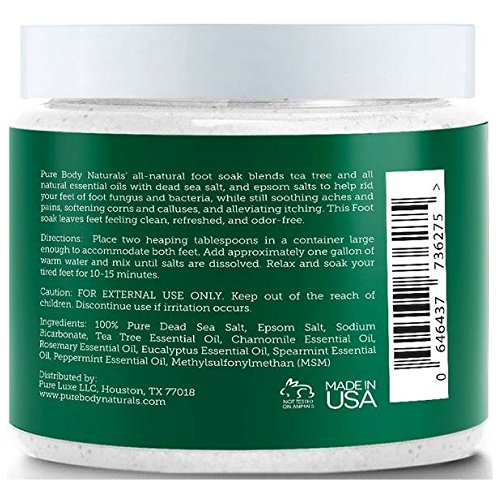 The Tea Tree Oil Foot Soak from Pure Body Naturals is a specialized blend of salts and soothing essential oils that will help keep your feet on top of their game! Loaded with antibacterial properties, Tea Tree and Peppermint Oil reduce symptoms of fungal infections, like swelling and itching, while fighting odor-causing bacteria for a clean, refreshed feeling.