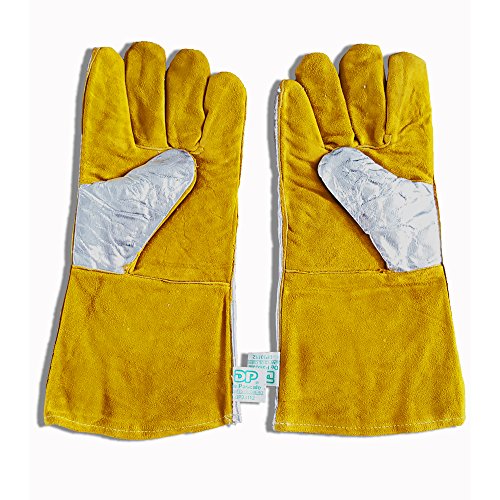 - 35cm/14" Aluminized back welding gloves feature a cowhide palm with reinforced thumb and ACK back design