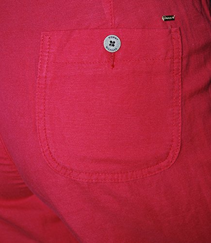 Hook and eye and zipper closure; belt loops Off-seam pockets at front; patch pockets at back
