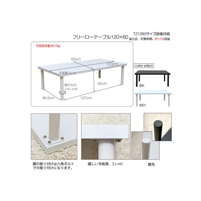 원본상품명: フリ?ロ?テ?ブル120×60cmブラック(TZ-1260BK)