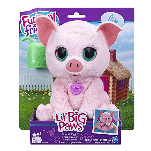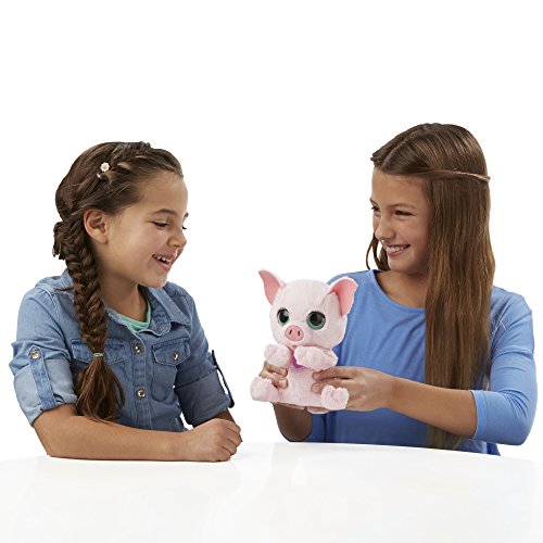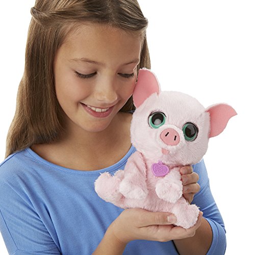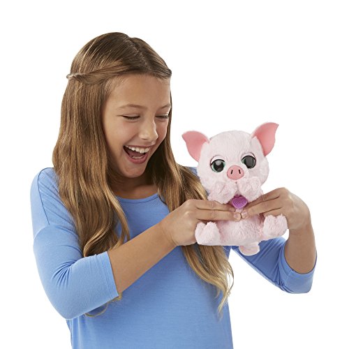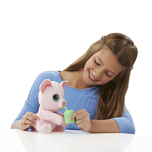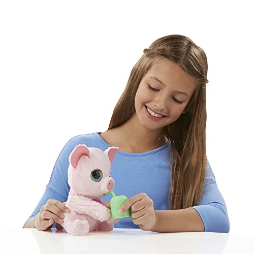 This Patootie Piggy toy is a playful little pink piglet who loves to make all kinds of funny noises! Press her tummy, and she moves her head, closes her eyes, and makes silly sounds. She can make happy, funny sounds. Let her have her soda cup and she'll make funny slurping sounds! This Patootie Piggy toy is one fun-lovin' friend! FurReal Friends and all related characters are trademarks of Hasbro.Feature