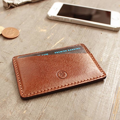 Product Description This leather business card holder is ideal for those who only like to take a few cards out and about. With a slim design, this luxury accessory can easily fit into the smallest pockets. Handmade in Italy, this leather card holder comes with a lifetime guarantee and has been made to improve with age. Versatile and uniquely designed, this accessory can also be used as a travel card or business card presentation holder if required. This essential accessory neatly accommodates your most used cards and keeps everything hidden from view. Our Manufacturing Philosophy Each individual creation is exquisitely handcrafted to the highest standard, using only premium full-grain, vegetable-tanned Italian leather. Not only is each hide carefully selected, but we also insist on sourcing the finest locks, linings and fittings to complement each design. From viewing the thumbnails, this will give you an insight into our tremendous attention to detail and to the careful selection of our materials. Why our leather is better than the rest! The Maxwell Scott 'Vera Pelle Italiana Conciata al Vegetale' is not only the most beautiful leather you have ever seen, but it is intended to stand the test of time and last substantially longer than other visually similar equivalents. It has been carefully chosen from one of the finest and most highly renowned tanneries in the whole of Italy. Our Promise We are dedicated to the total satisfaction of each and every customer. We are aware that our products are certainly not the cheapest on Amazon, however once you have bought and owned a Maxwell Scott product; you will understand that they offer incredible value. We would also like to point out that we have arguably some of the best feedback on Amazon.