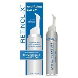 Retinol-X Anti-Aging Eye Lift 0.41 Fl.Oz. Retinol-xTM anti-aging eye lift combines the clinically proven results of retinol with the newest skincare ingredients to serve as an effective triple-action anti-aging eye treatment to smooth, soften and protect the delicate under eye-area -without surgery or injections. Instantly upon application, the unique Goji Berry Peptide structure lifts, firms and smoothes away fine lines and puffiness. Formulated with Retinol the purest most natural form of Vitamin A, which absorbs into the lower layer of the dermis restoring moisture and rejuvenating skin from the inside out. Natural antioxidant Green Tea Extract protects against the aging effects of free radicals.