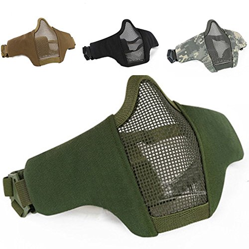 -. Feature : This low-carbon steel metal mesh face mask with soft padded nylon fabric, provides you the best protection for the face,nose and mouth / The holes on airsoft mask are small enough to keep an air soft pellet or paintball from smacking you in the face.Absolutely no problems being able to talk and breathe in this. / Fit for all young and adults, you can gently bent masks and googles to fit to your face better. / The mask has 2 elasticated straps,as well as an additional back-strap to ensure that mask couldn't slip, so it will never drop from your face when you are playing. / They can be folded which makes it easy to carry. Perfect for war game, paintball, hunting, shooting, cosplay and military purpose.