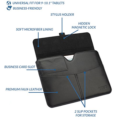 -. Title : Universal 9-10.1'' Tablet sleeve case, COOPER ENVELOPE Business Travel Portfolio PU Leather Sleeve Pouch Carrying Case Bag Cover with Card Slot, Pocket & Stylus Holder
