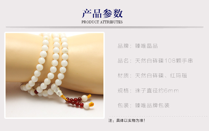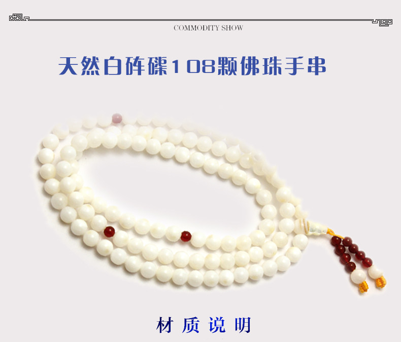 天然红玛瑙 白砗磲108颗佛珠手链 白砗磲108颗念珠手链