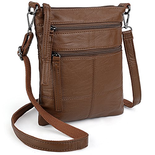 5 zipper pockets. Main zipper pocket contains 1 zipper 5.5" cell phone pocket and 2 slip pockets.