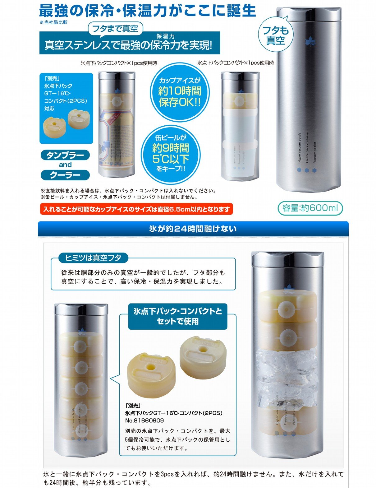 ◆ Ice does not melt for about 24 hours