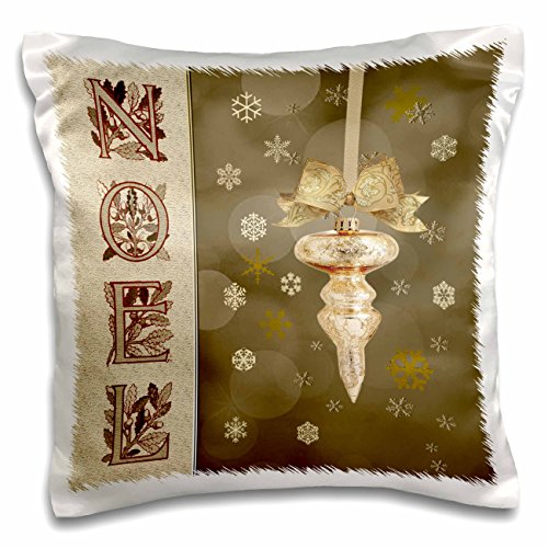 3dRose Elegant Gold Ornament on Snowflakes, Noel, Cream and Brown - Pillow Case, 16 by 16-inch (pc_195834_1)