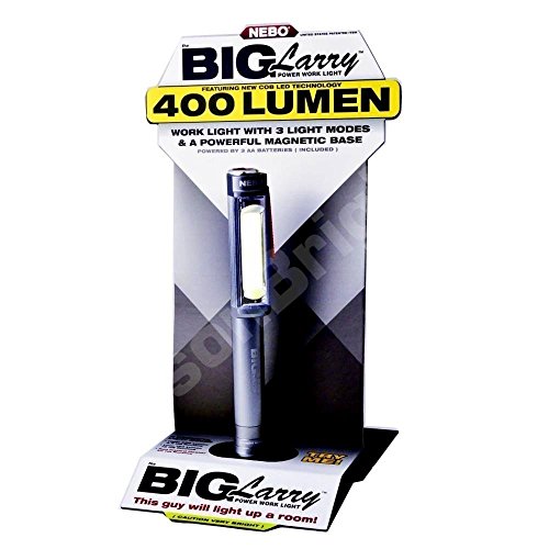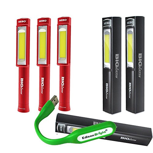 3 PACK 6413 Nebo Big Larry Red body 400 lumen Flashlight COB LED Magnetic Super Bright Worklight with 9 X AA Batteries and EdisonBright USB powered reading light bundle