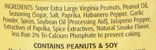 -. Binding : Grocery -. Brand : The Peanut Shop of Williamsburg -. EAN : 0053136896528 -. Feature : Distinctively unique and different And unbelievably crisp / Our same Super Extra Large Handcooked Virginia Peanuts are lightly seasoned in a variety of flavors / Try a tin for yourself and give several as gifts to those you wish to receive the finest -. Label : The Peanut Shop of Williamsburg -. Manufacturer : The Peanut Shop of Williamsburg -. Model : 89652 -. MPN : 89652 -. NumberOfItems : 1 -. PackageQuantity : 1 -. PartNumber : 89652 -. ProductGroup : Grocery -. ProductTypeName : GROCERY -. PublicationDate : 2012-04-26 -. Publisher : The Peanut Shop of Williamsburg -. Size : 10.5 Ounces -. Studio : The Peanut Shop of Williamsburg -. Title : The Peanut Shop of Williamsburg Hot Habanero Chile Pepper Nuts, 10.5-Ounce Tin -. UPC : 053136896528