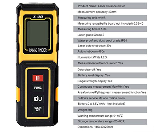 AMYAMY Electronic Laser Distance Measure with 131ft(40m) range and Mini Handheld Digital Laser Tape Measure/ Measuring Tape Range Finder