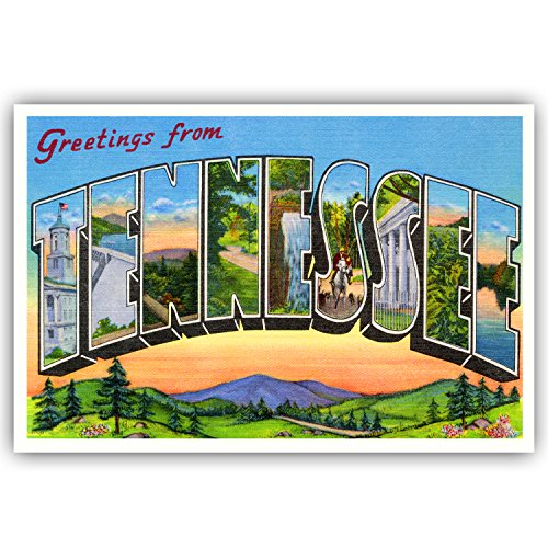 GREETINGS FROM TENNESSEE vintage reprint postcard set of 20 identical postcards. Large letter US state name post card pack (ca. 1930's-1940's). Made in USA.