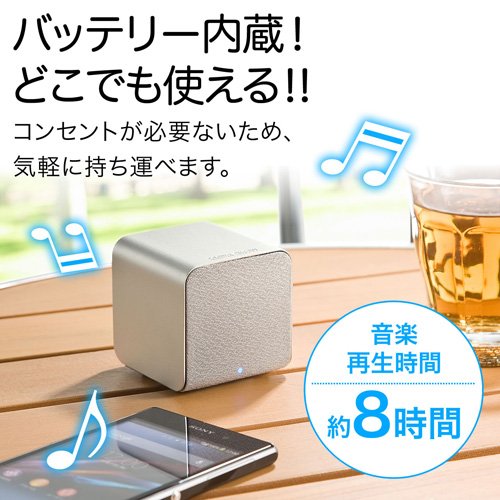 산와 다이렉트 블루투스 Bluetooth 스피커 【손바닥 사이즈에 운반에 편리】 NFC탑재 iPhone 스마트 폰 대응 실버 400-SP052SV