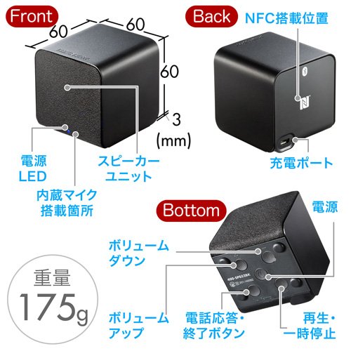 원본상품명: サンワダイレクト Bluetoothスピ?カ? 【手のひらサイズで持ち運びに便利】 NFC搭載 iPhone スマ?トフォン ?? シルバ? 400-SP052SV