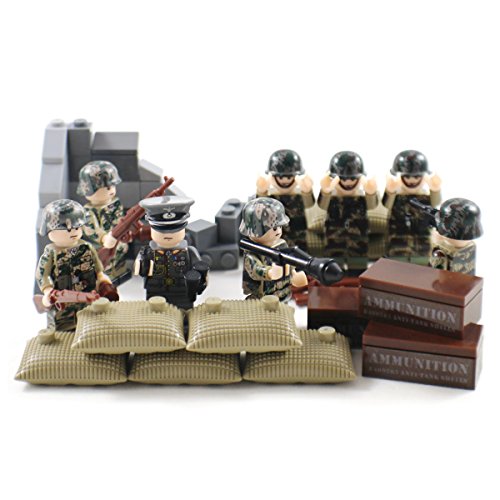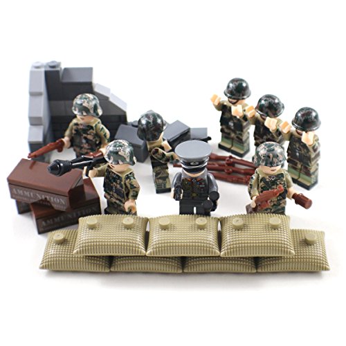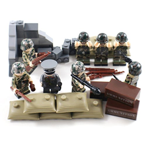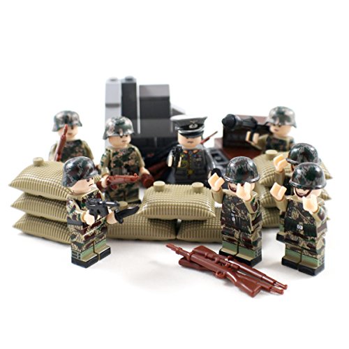-. Binding : Toy -. Brand : Shantou Blocks -. EAN : 0021808994735 -. Feature : Fully compatible with and other building blocks / Features 8x woodland camo minifigure soldiers / Includes a large selection of firearms and munitions / Includes 3 weapon boxes and several sandbangs / Includes blocks to make a ruined wall / building -. Genre : War -. IsAdultProduct : 0 -. Label : DuoLePin -. Manufacturer : DuoLePin -. MPN : Army110 -. PackageQuantity : 1 -. PartNumber : Army110 -. ProductGroup : Toy -. ProductTypeName : TOYS_AND_GAMES -. Publisher : DuoLePin -. Studio : DuoLePin -. Title : Woodland Camo WW2 Minifigure Army Soldiers - Military Building Block Figures -. UPC : 021808994735