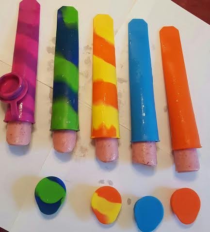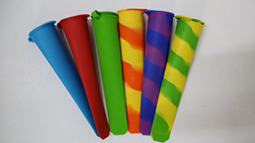 The Trusty Baker- Assorted RAINBOW colored Silicone Ice pop-Popsicle molds- set of 6- attached lids - NON BPA-FREE SHIPPING